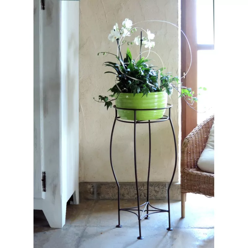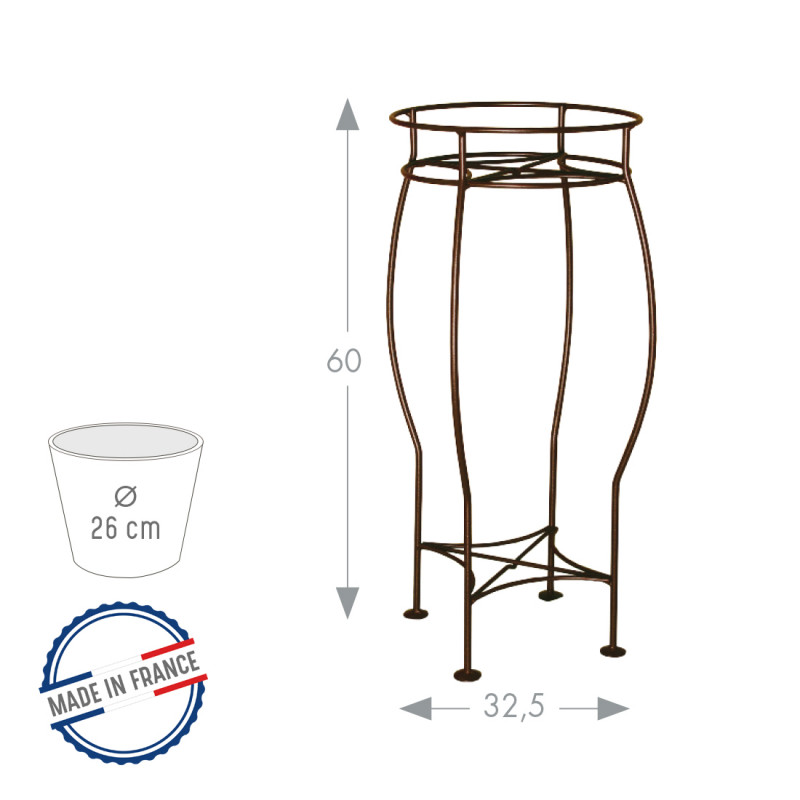 Si vous recherchez une sellette avec une soucoupe intégrée dans le même style, nous vous conseillons la sellette 60 cm Volute avec sa soucoupe effet fer vieilli.