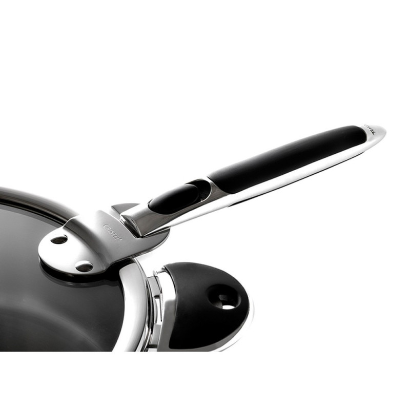 Simplicité, efficacité et sécurité ces trois mots en disent long sur la qualité des produits fabriqués par Cristel. Elle se manipule d'une seule main et se verrouille automatiquement. Elle permet une sécurité accrue de votre cuisine en présence de jeunes enfants. Fabriquée en acier inoxydable 18/10 brossé, la poignée Strate amovible vous assurera durabilité et élégance sur vos fourneaux. Tout en étant compatible avec le lave-vaisselle pour vous permettre un nettoyage facile et ainsi passer un peu plus de temps avec vos convives que dans la cuisine.