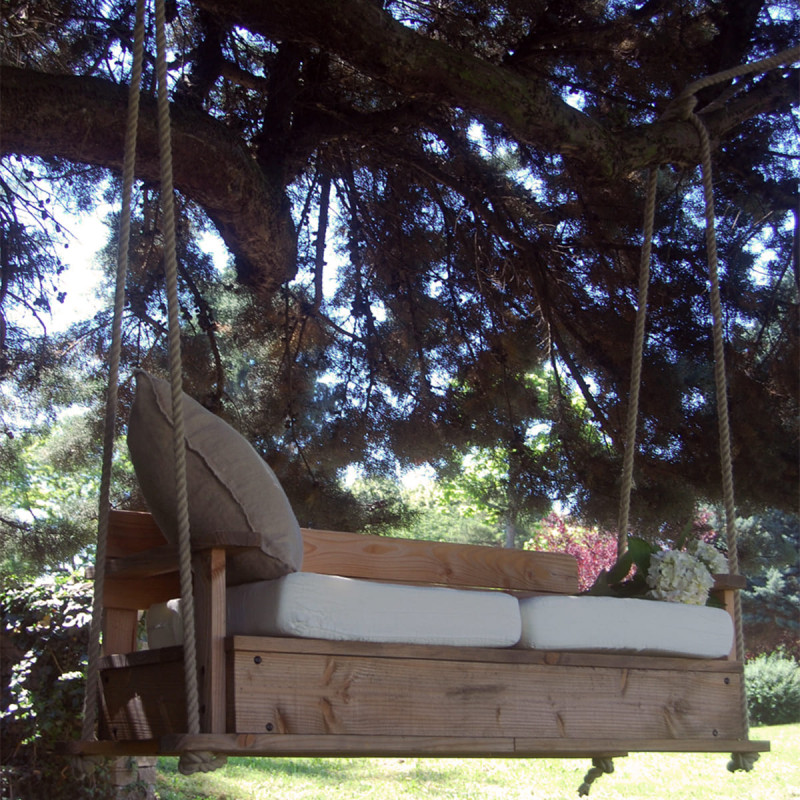 Les assises des balancelles ont une longueur réduite de 20 cm par rapport à la longueur totale de la balancelle (les accoudoirs sont décomptés).