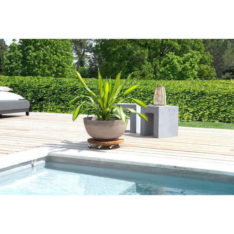 Ce roule plantes en pin des landes peut supporter jusqu'à 120kg grâce à ses 6 roulettes. Idéal pour déplacer facilement les grands pots de fleurs/plantes sur sa terrasse !