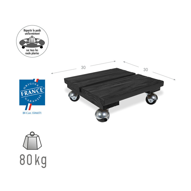 Ce roule plante en pin des Landes peut supporter jusqu'à 80 kg grâce à ses 4 roulettes.