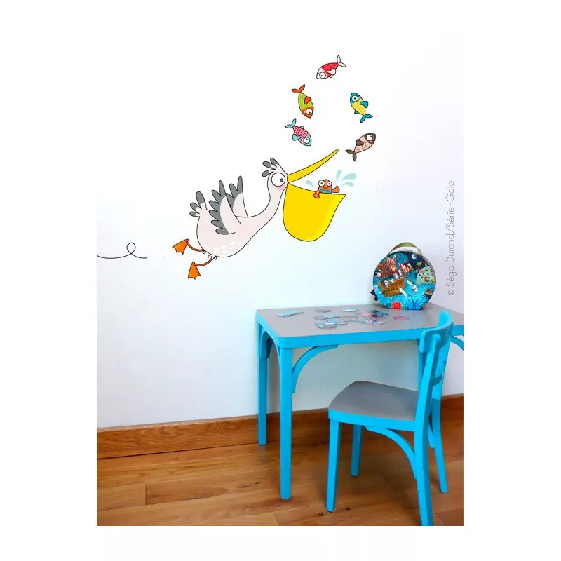 Le coq vous présente : Taille de l'illustration : pélican 60cm x 40cm + 5 poissons. Produit créé et fabriqué en France. Impression haute qualité sur vinyl satiné. Un Produit Made in France.