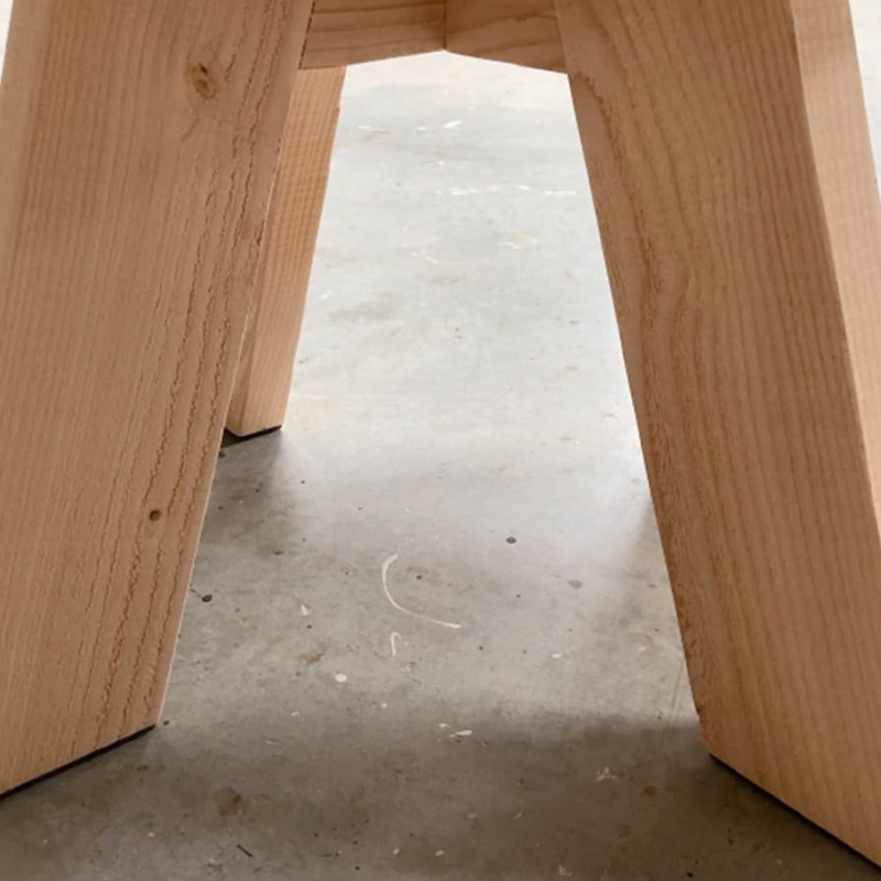Dans le but de la rendre plus résistante et durable, le piètement de cette table d'extérieur est renforcé. Elle est aussi fabriquée en bois massif Douglas, une essence de bois ayant naturellement des propriétés de résistance aux intempéries. Ce bois est issu de forêts du Haut-Beaujolais, il est séché, mais non traité chimiquement.