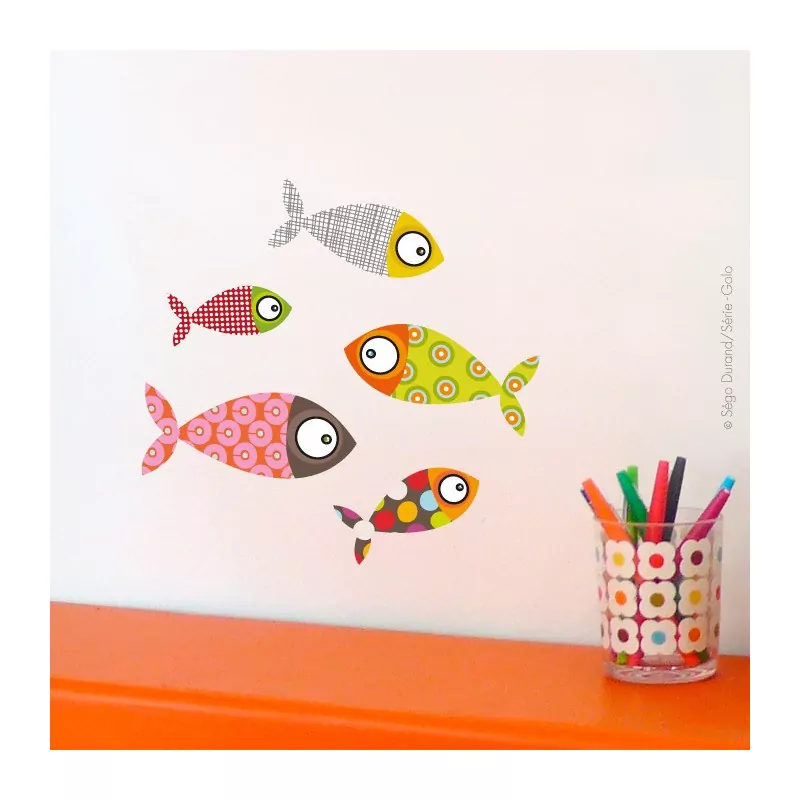 Le coq vous présente : Taille de l'illustration : poissons de 3,5cm x 9cm à 7cm x 16cm. Produit créé et fabriqué en France. Impression haute qualité sur vinyl satiné. Un Produit Made in France.
