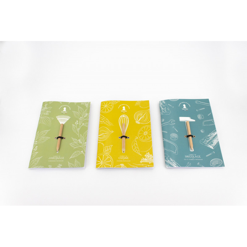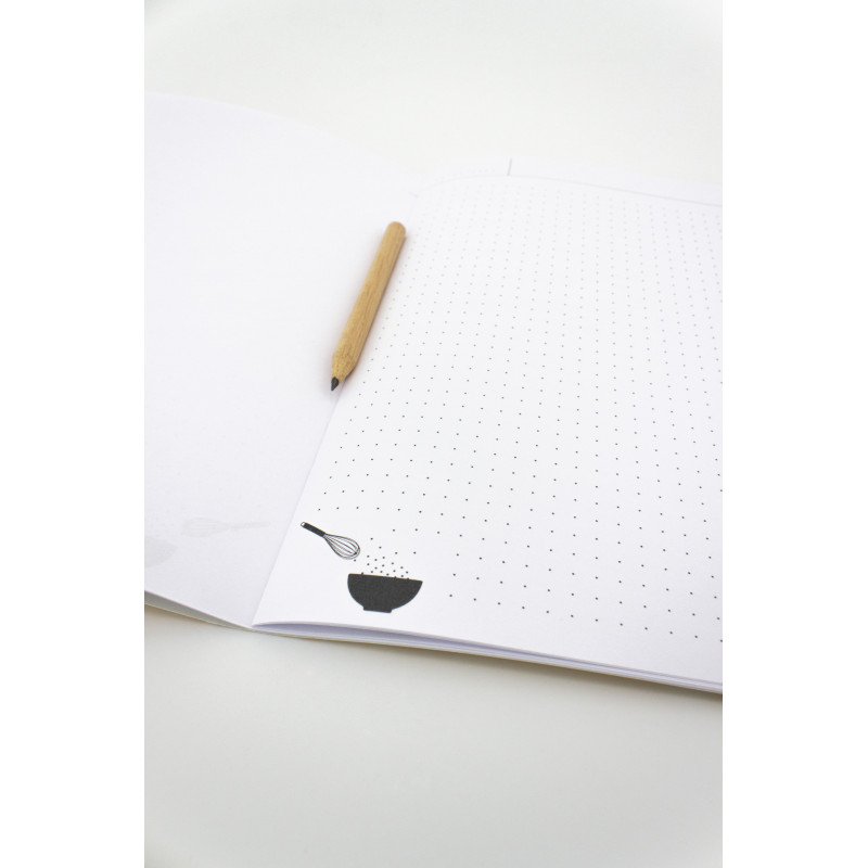 Notez toutes vos recettes et idées repas sur ce carnet de cuisine Made in France. Pratique à ranger, il ne prend que très peu de place. Ses 60 pages vous permettront d'ajouter toutes les recettes que vous aimez ! Le carnet de cuisine est fourni avec son petit crayon en bois.