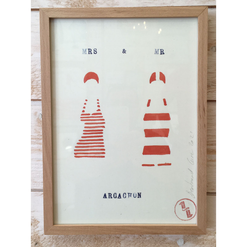 Voilà une affiche originale pour mettre de la couleur et de la chaleur estivale dans votre décoration. Avec cette décoration murale "Mrs & Mr Arcachon" vous apportez gaieté et originalité à votre intérieur.