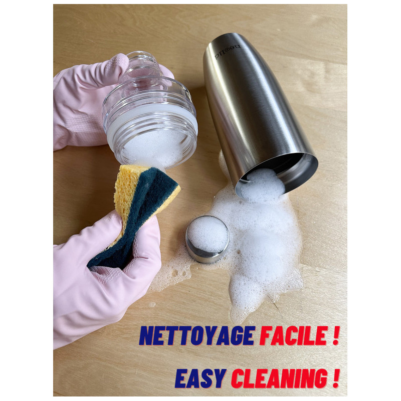 • Conseils d’entretien : lavage en lave-vaisselle (sauf le bouchon), bien rincer après chaque utilisation