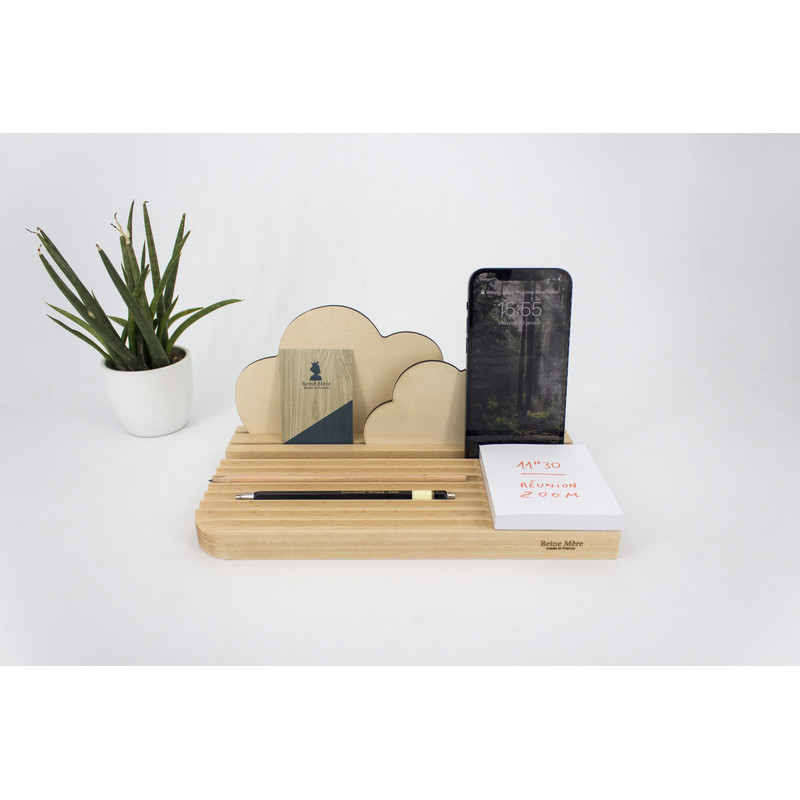 Ce bel objet réalisé en bois de hêtre et de bouleau vous permettra d'organiser votre bureau. Avec ses rangements, vous pourrez y glisser vos crayons, vos stylos, un bloc-notes ou encore votre smartphone. Ainsi, vous aurez la possibilité de consulter facilement vos messages ou vos mails très facilement depuis votre organisateur de bureau. Les formes de nuages vous permettront de fixer des photos pour vous sentir comme chez vous.