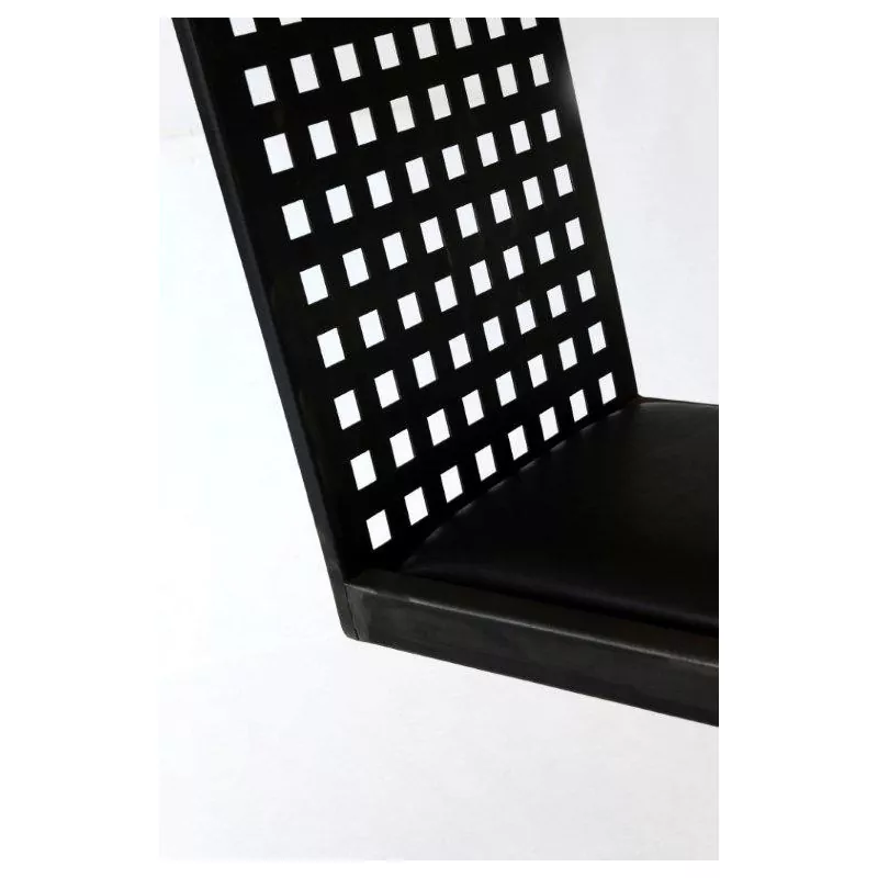 Le dossier de la chaise réalisé dans le même matériau que la structure tubulaire présente un motif géométrique, de carrés manquants, ce qui sert à alléger la chaise. Il est également verni, ce qui vous permettra de garder l'esprit industriel de cette chaise intacte pendant de nombreuses années.