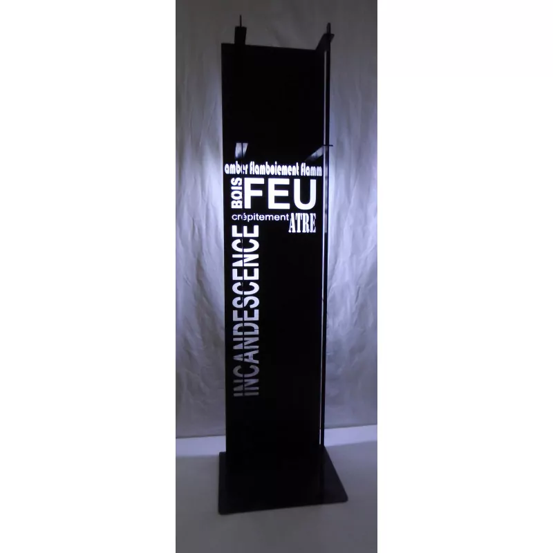 Range bois design CLF Création en métal brossé et vernis à poser. Il dispose d'une lumière d'ambiance avec une bande LED sur l'arrière.