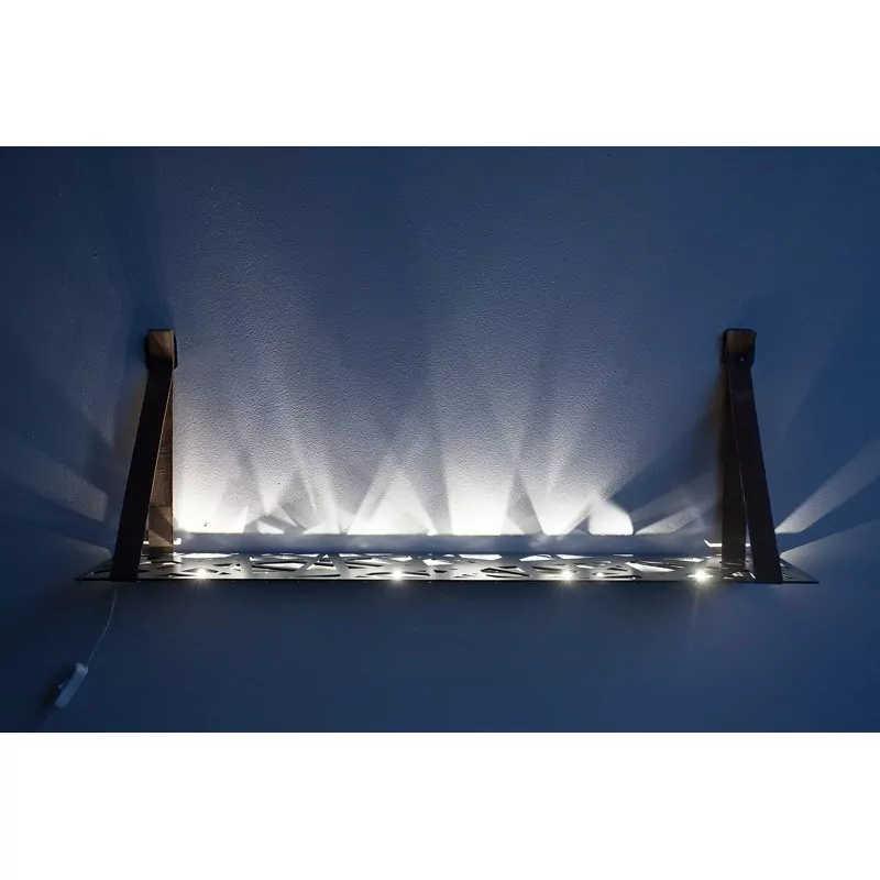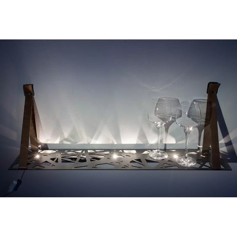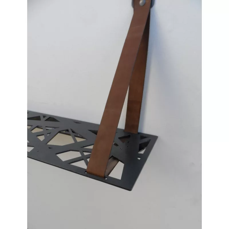 L'étagère est fournie avec des suspensions en cuir permettant de la fixer aux murs.