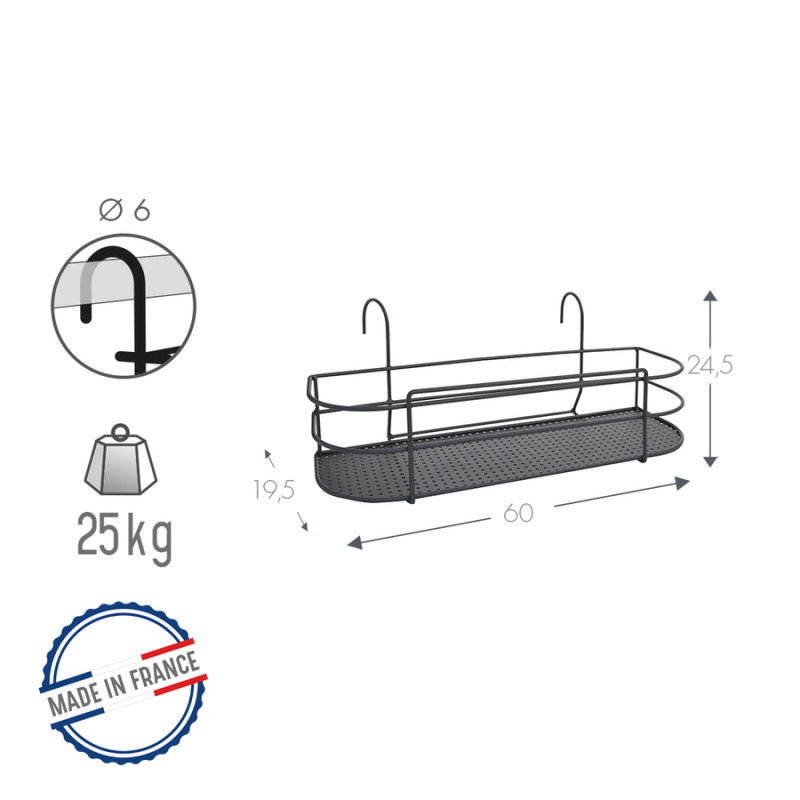 Fabriqué par les équipes de Louis Moulin dans leurs ateliers de Saint-Laurent d'Agny, le support balconnière est peint avec une peinture anthracite epoxy permettant une résistance au gel et aux Uv. Ainsi, vous pourrez l'installer aussi bien en intérieur qu'en extérieur.
