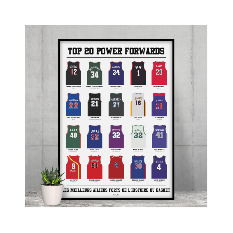 Il s'agit d'un produit fabriqué en france, pour célébrer les plus grands power forwards de l'histoire de la NBA. Cette affiche est un cadeau parfait pour les passionnés de basket et pour ceux qui apprécient l'histoire du sport.