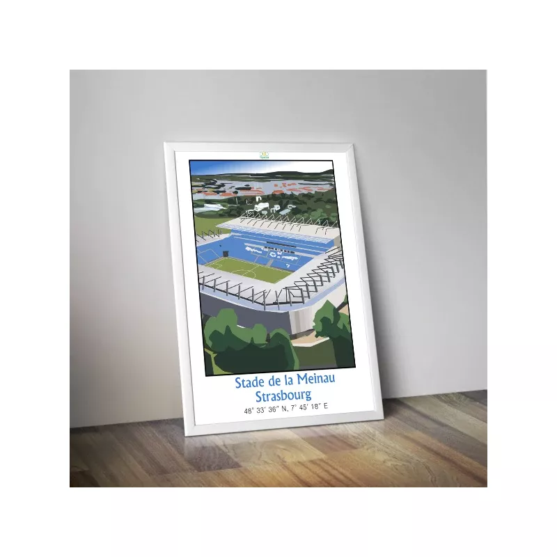 Aujourd'hui, le Coq vous offre le choix de découvrir l'affiche sous deux formats différents, le format classique d'un poster 50x70 cm qui s'affichera facilement chez vous, mais aussi le format Horizontal qui vous permettra d'afficher votre amour pour le stade de la Meinhau en bénéficiant d'une vue panoramique sur le stade historique du Racing Club de Strasbourg.
