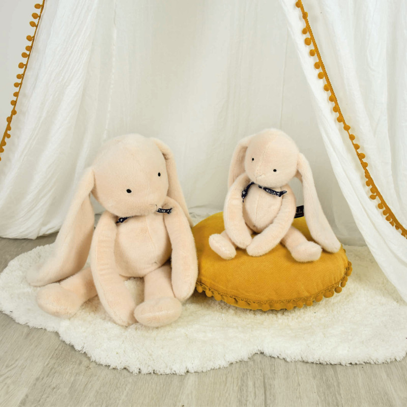 La peluche Lapin Méloé sera le compagnon idéal de ceux qui vont aimer se balader aussi bien à 4 pattes qu'en courant de partout, il sera facilement pris en main de par sa forme avec de pieds, des grandes jambes et de grandes oreilles. Parfait pour travailler la motricité, et la coordination des mouvements.