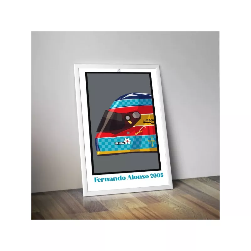 Sur cette affiche, vous retrouverez le casque aux couleurs originales qu'a porté le pilote qui évoluera dans de nombreuses écuries prestigieuses comme par exemple McLaren-Mercedes, Ferrari, McLaren-Honda, Alpine et plus récemment Aston-Martin.
