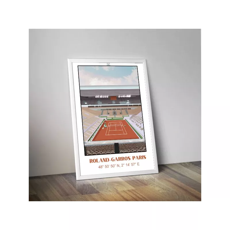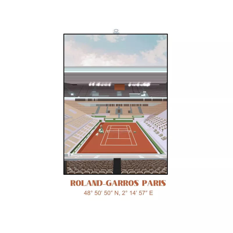 Retrouvez le cours central Phillipe-Chatrier sur une belle affiche en 50x70, le plus grand stade de terre battue au monde, qui accueille le célèbre tournoi de Roland Garros chaque année. Crée sous le nom du championnat de France à l'origine, c'est lors de la construction du Stade Roland Garros, en 1928, que le tournoi prendra le nom du célèbre aviateur français.