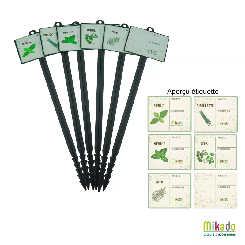 Ils vous permettront d'identifier en un coup d'œil la ligne d'aromates à arroser, aussi bien à l'aide du dessin que la police d'écriture facilement lisible.