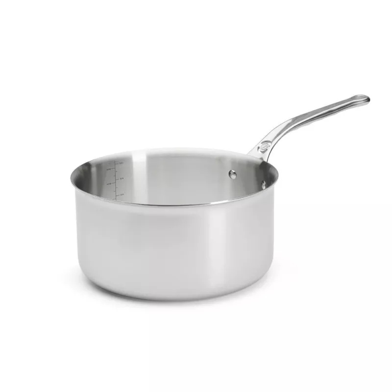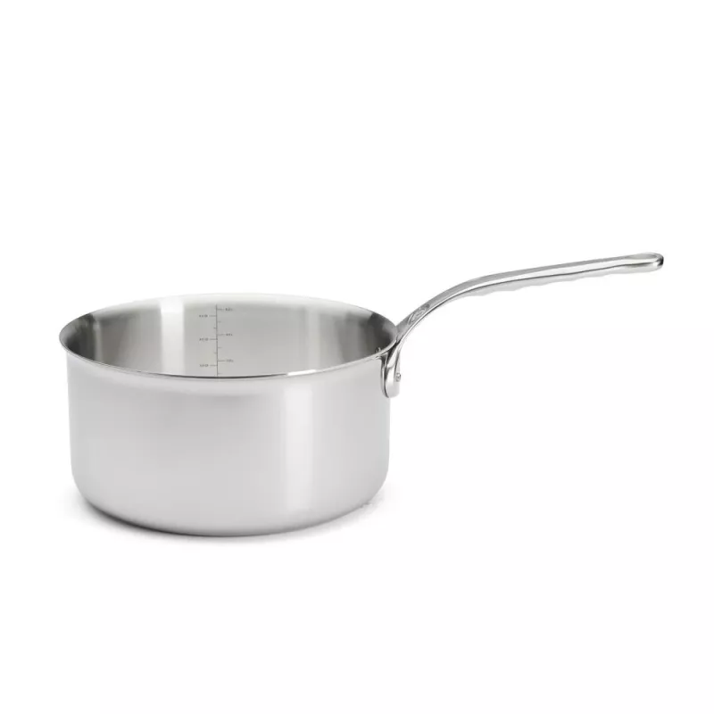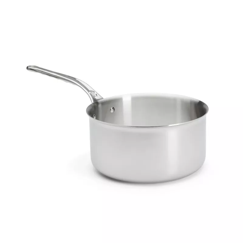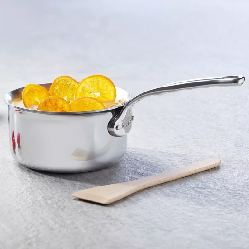 Cette casserole est fabriquée en France, dans les ateliers de De Buyer au Val d’Ajol, à partir d’un matériau multicouche innovant : une alliance d’aciers inoxydables à l’extérieur et d’aluminiums à l’intérieur. Ce matériau garantit une diffusion uniforme de la chaleur sur toute la surface de la casserole, ainsi qu’une montée et une baisse rapide en température. Vous pouvez ainsi contrôler parfaitement la cuisson de vos aliments, sans risque de les brûler ou de les dessécher, de quoi ravir vos convives !