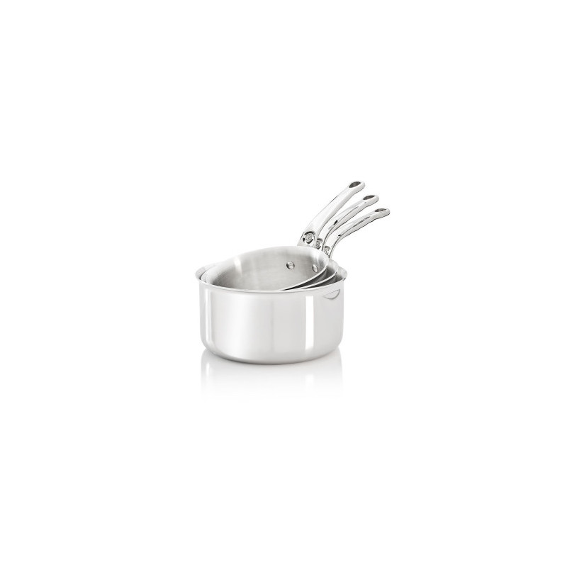 Ce set comprend 3 casseroles de 16, 18 et 20 cm de diamètre, adaptées à tous les types de feux, y compris l’induction et le four.