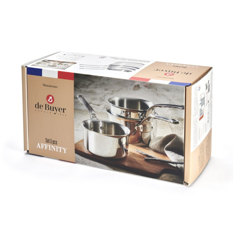 Le set de 3 casseroles de la collection Affinity fabriquée par De Buyer