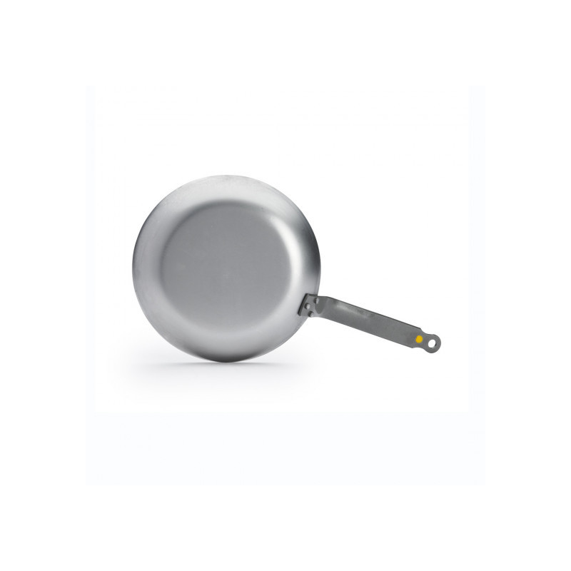 Cette poêle est fabriquée en France, dans les Vosges, par la maison De Buyer, spécialiste des ustensiles de cuisine depuis 200 ans. Elle est réalisée en tôle d’acier blanche, un matériau 100% naturel, robuste et durable. Elle est protégée par un revêtement à la cire d’abeille, qui préserve son aspect lisse et argenté, et qui facilite le culottage.