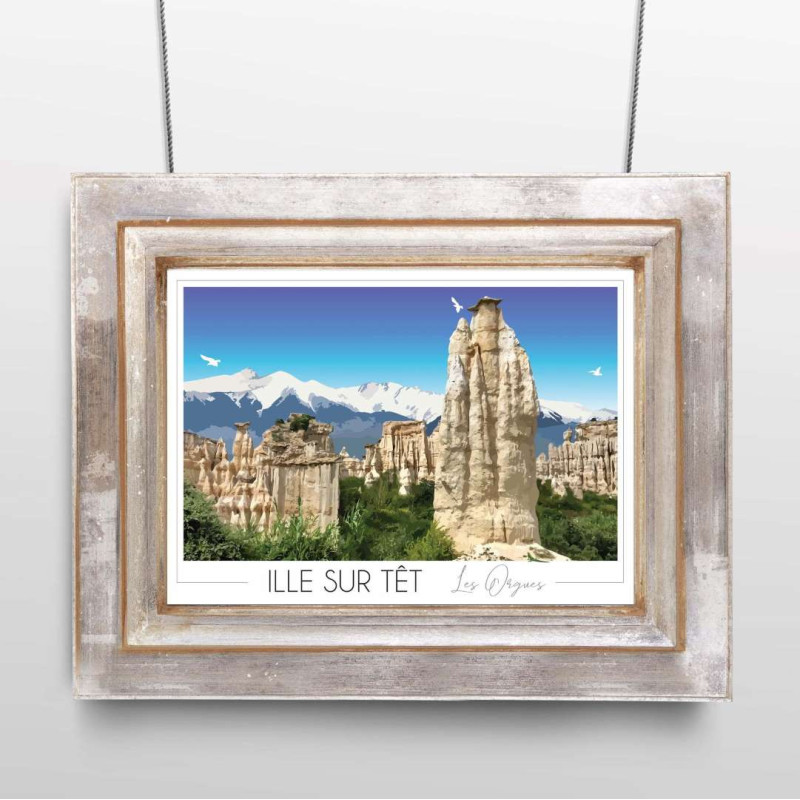 Découvrez cette splendide affiche des orgues naturels du village d’Ille-sur-Têt, qui vous fera voyager dans les Pyrénées-Orientales.