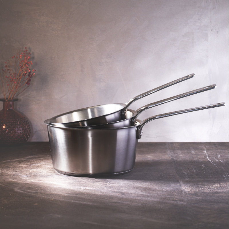Le set de 3 casseroles en inox brossé collection 1826 fabriqué par Cristel