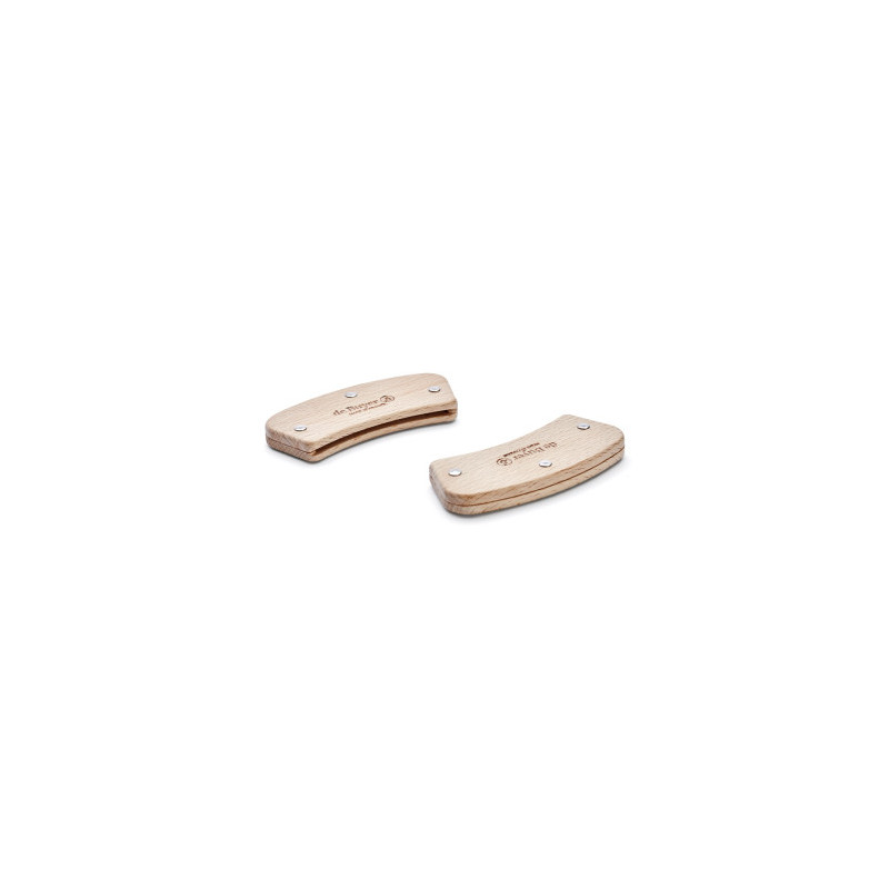 Les Anses amovibles en bois de hêtre Loqy conçues et fabriquées par De Buyer, entreprise française reconnue pour son matériel de cuisine professionnel depuis 1830.