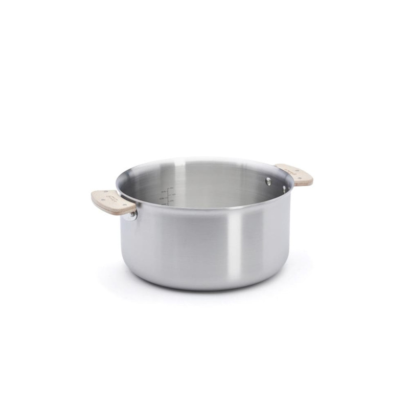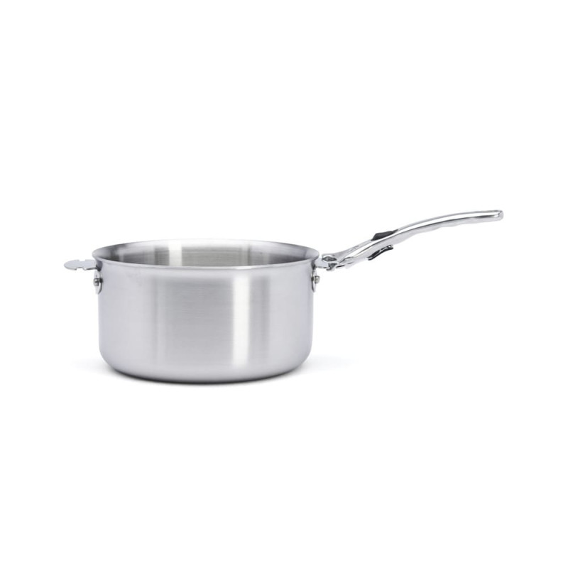 La construction en inox multicouche 3-ply est l'arme secrète du fabricant De Buyer, elle permet une conduction homogène de la température sur tout le corps de la casserole. Cela offre une grande réactivité tant à la montée comme à la descente en température, ce qui est idéal pour maîtriser facilement tous les types de cuisson.
