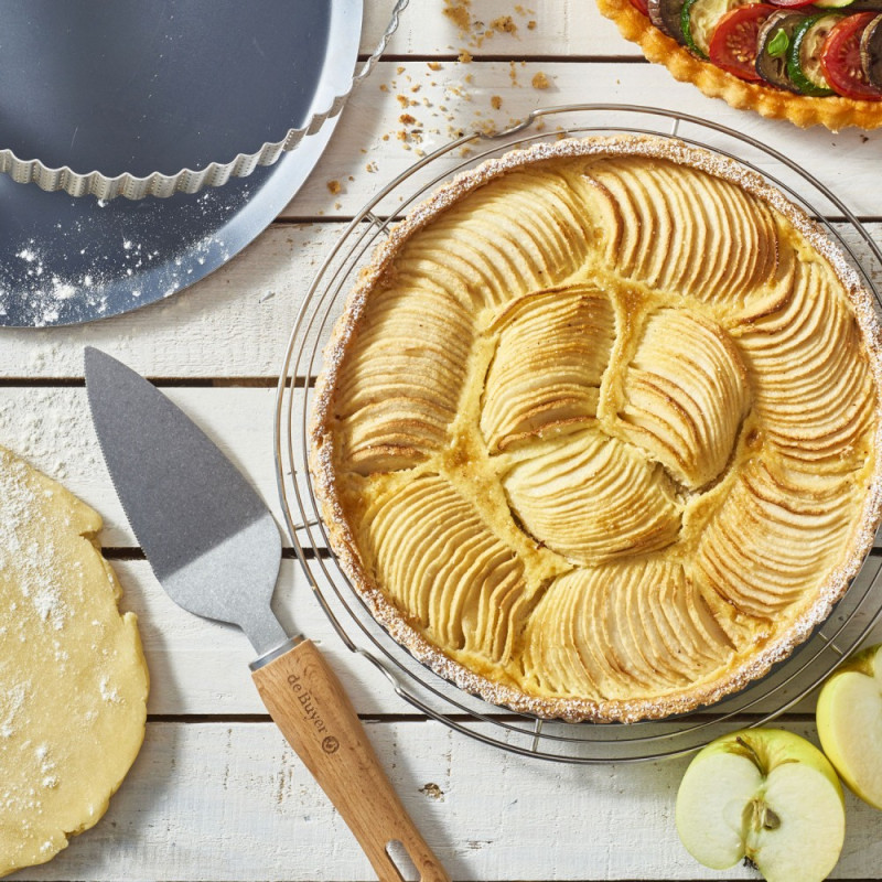 Le Coffret est composé d'un cercle à tarte cannelé micro perforé de 24 cm de diamètre et d'une hauteur de 3 cm, qui permettra à votre pâte de cuire de façon uniforme.