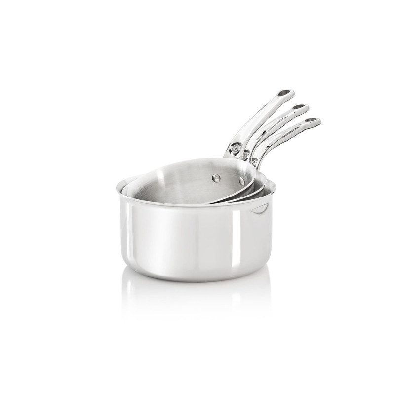 Les instruments de cuisine de la série Affinity disposent d’une base multicouche (5 couches) assurant une répartition homogène de la chaleur. Leur manche est fabriqué en fonte d'acier inoxydable, fixé par rivets, et intègre un système anti-chaleur pour une prise en main sécurisée. Ils sont également conçus pour être compatibles avec le lave-vaisselle et sont munis d’un bord verseur pour faciliter l’utilisation.