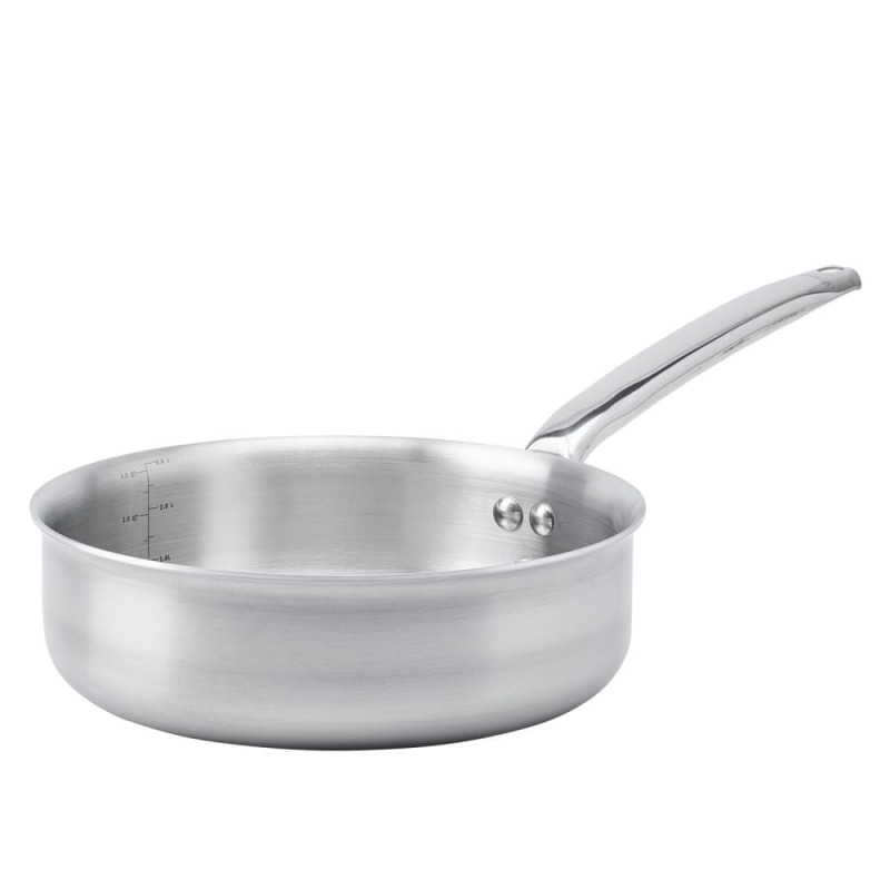 Cette collection Alchimy, à la finition polie brossée, est constituée d'acier inoxydable multicouche : cette technologie ingénieuse d'inox et d'aluminium qui assure une diffusion homogène de la chaleur sur tous types de feux, y compris l'induction et le four.