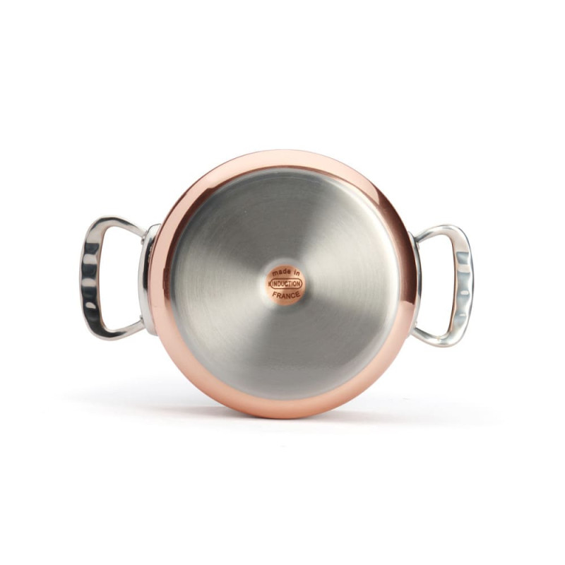Le faitout est composé de 90% de cuivre pour donner la meilleure conductivité thermique et 10% d'acier inoxydable AISI 304 pour une meilleure durabilité et une hygiène irréprochable.