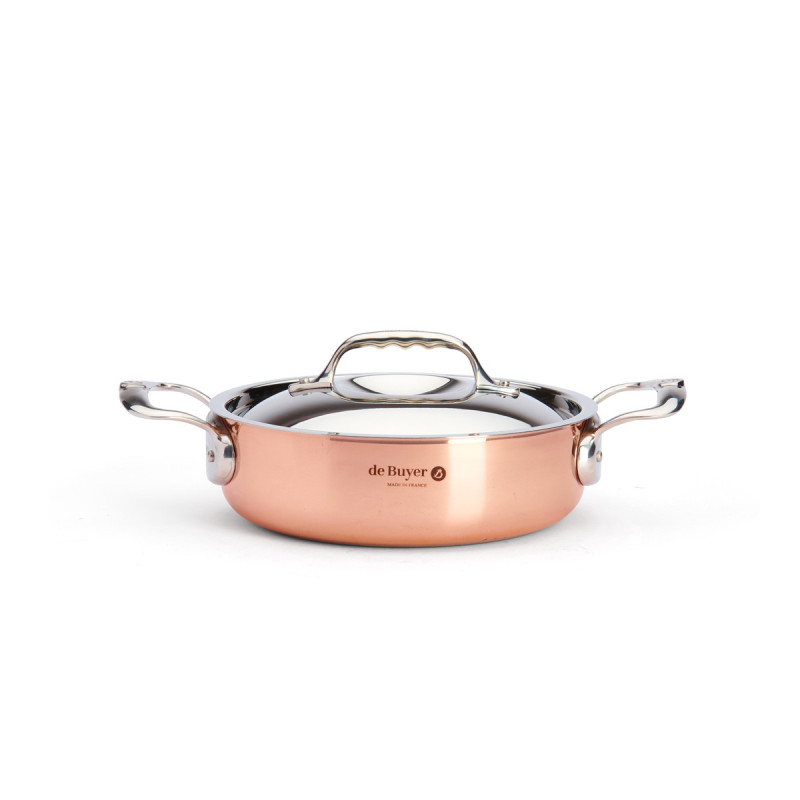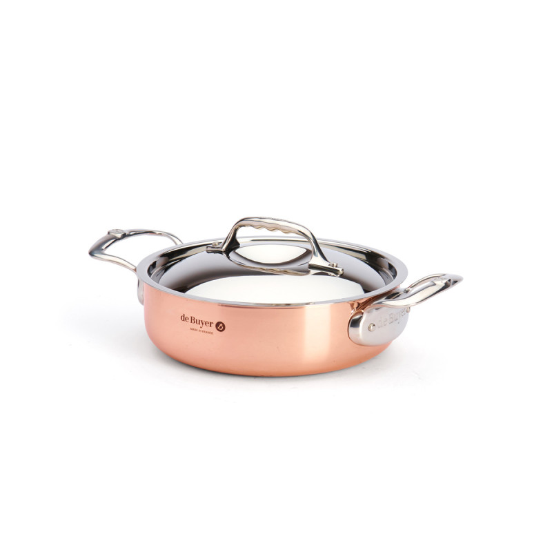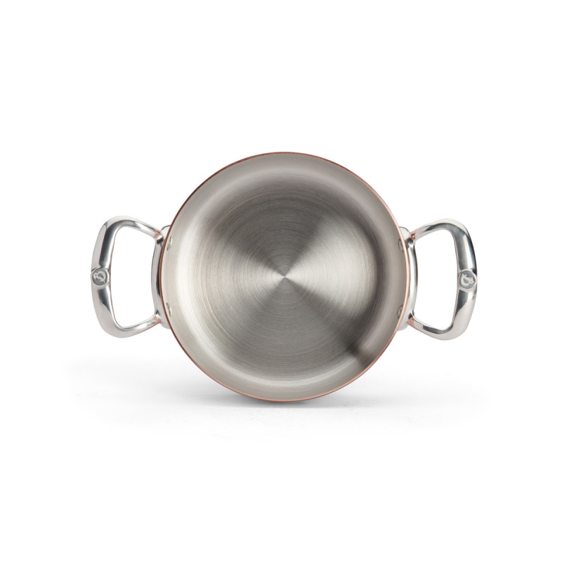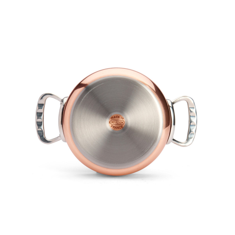 Le sautoir est composée de 90% de cuivre pour donner la meilleure conductivité thermique et 10% d'acier inoxydable AISI 304 pour une meilleure durabilité et une hygiène irréprochable.