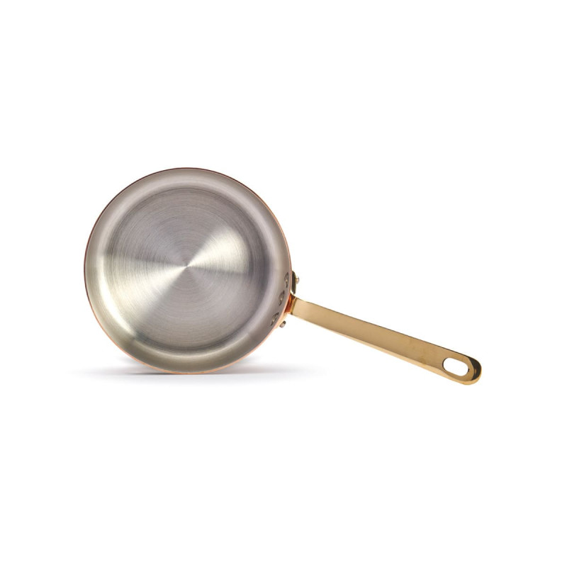 Chaque sauteuse bénéficie d’un polissage miroir haut de gamme et de poignées dorées en laiton solidement rivetées. Elles font de cet ustensile un choix prestigieux pour le service et la présentation.