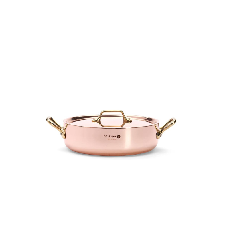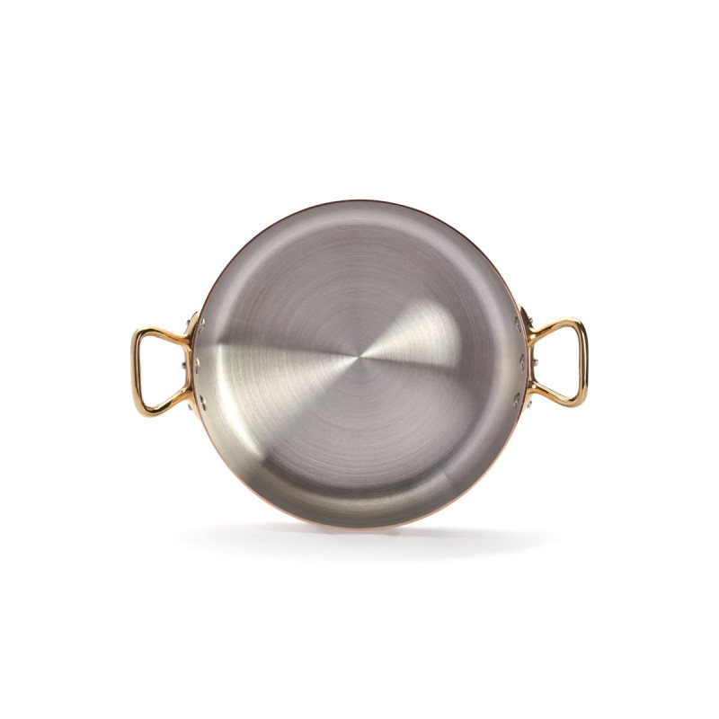 Le sautoir en cuivre et Inox avec ses anses en laiton de la collection Inocuivre fabriquée par De Buyer.