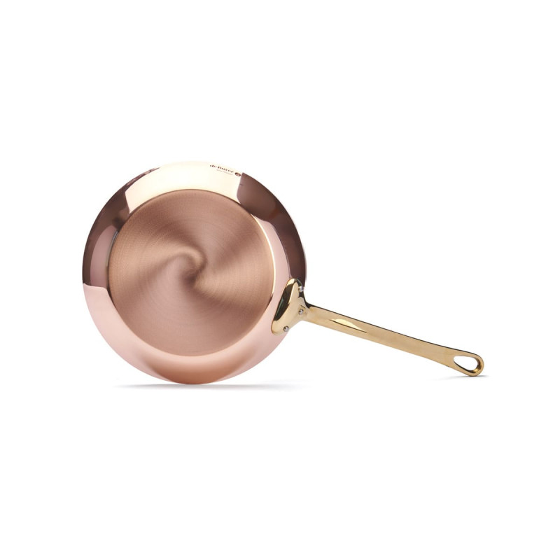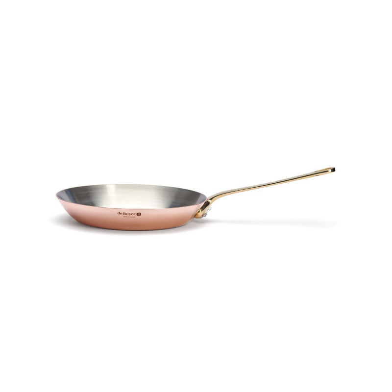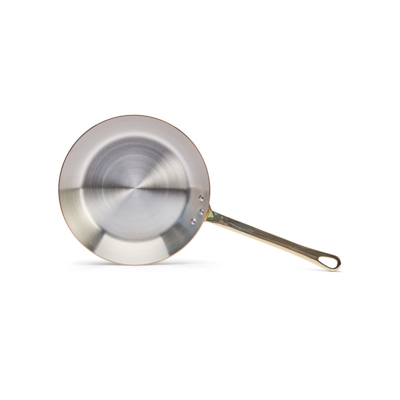 La poêle à frire en cuivre et Inox avec sa queue en laiton de la collection Inocuivre fabriquée par De Buyer.