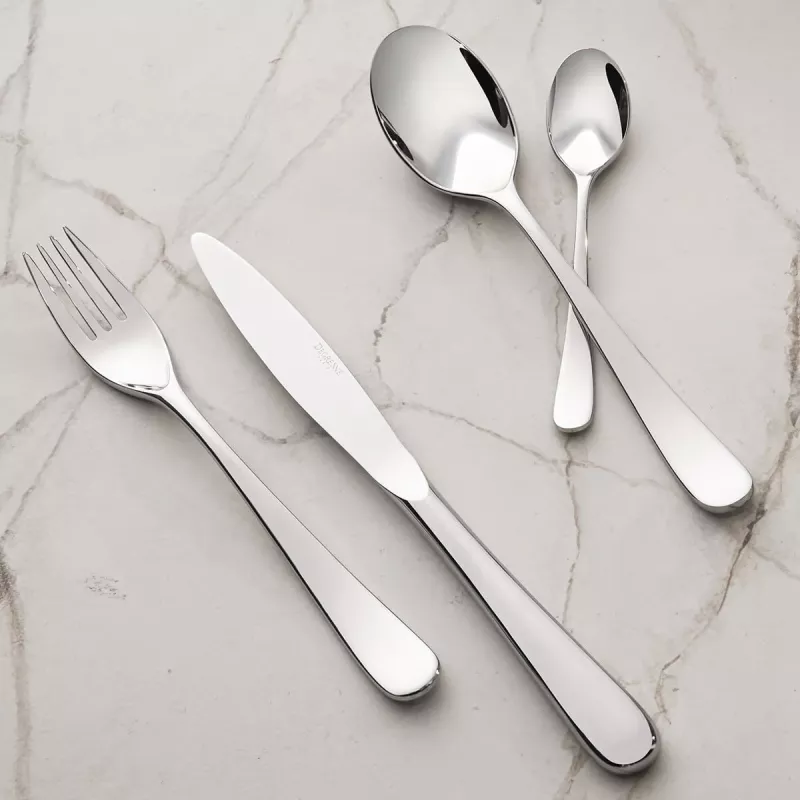 Les lignes souples et harmonieuses s’associent à une ergonomie sans faille, offrant confort et finesse à l’usage. Réalisée en acier inoxydable 18-10, cette collection n’est pas seulement belle à regarder, mais aussi conçue pour durer et simplifier l’entretien, assurant ainsi une présence durable et pratique dans le quotidien comme dans les moments de célébration.