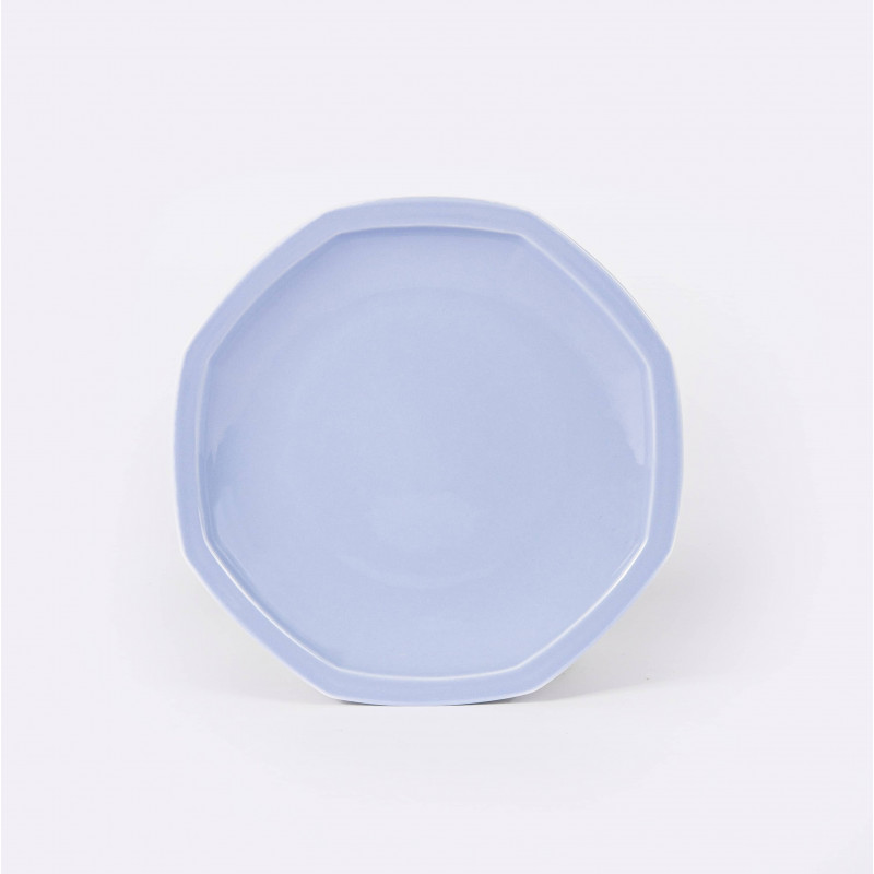 Assiette plate octogonale en porcelaine bleue vendue à l'unité.