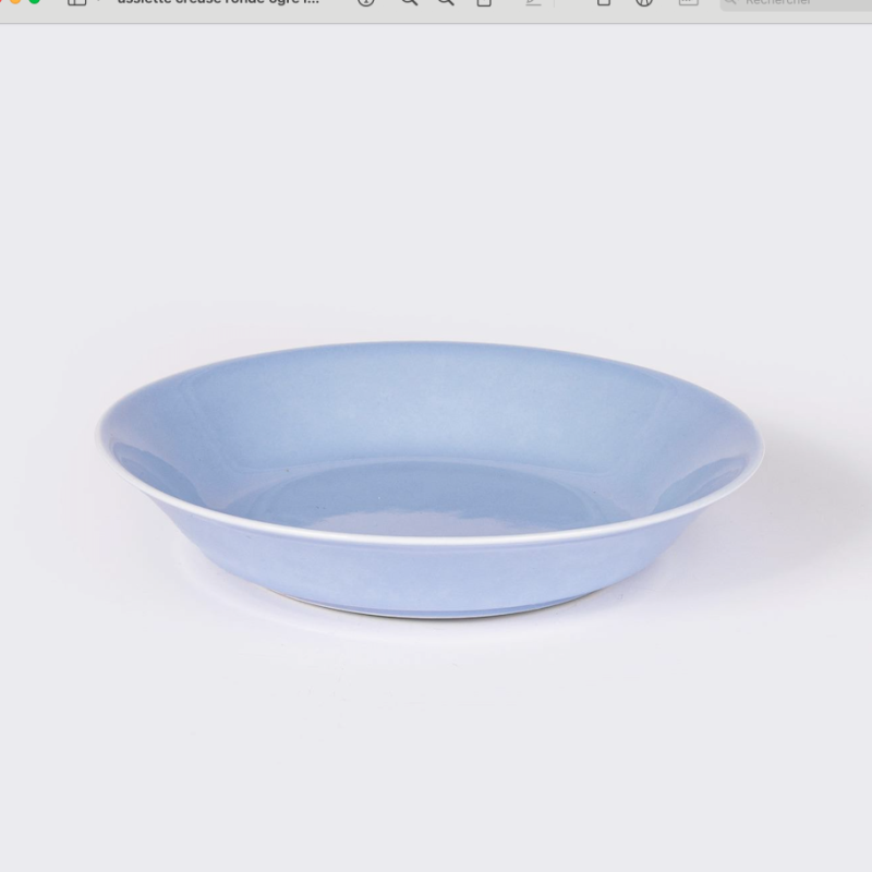 L'assiette creuse ronde en porcelaine bleue fabriquée par Ogre la Fabrique.