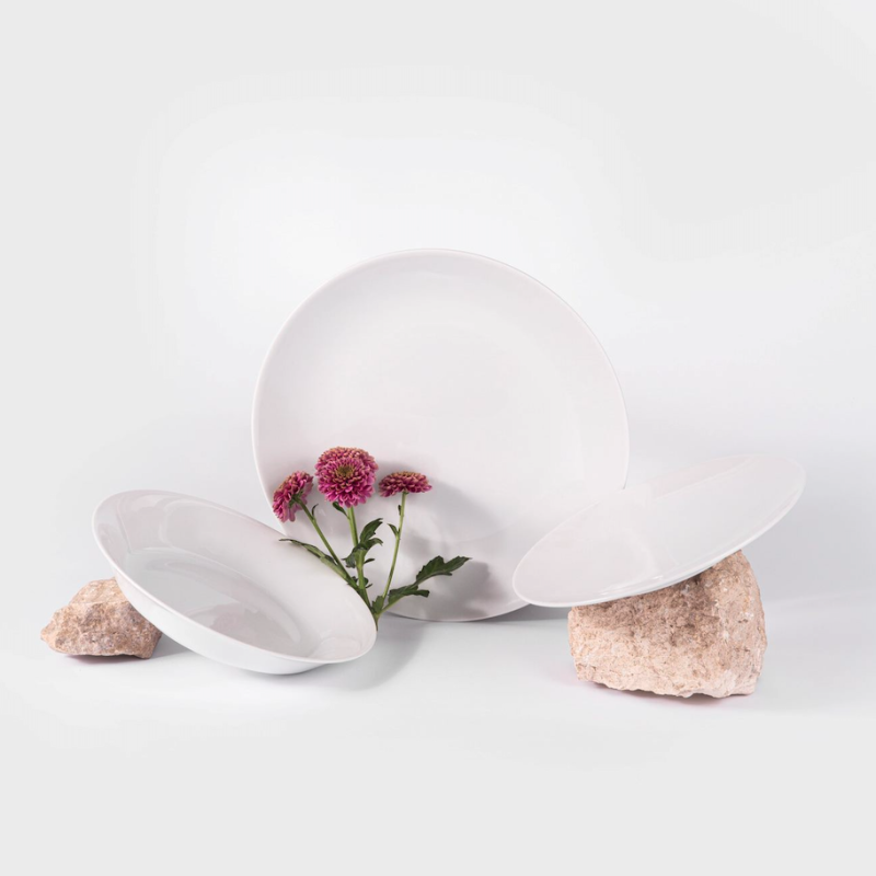 L'assiette creuse et ronde en porcelaine blanche fabriqué par Ogre la Fabrique.