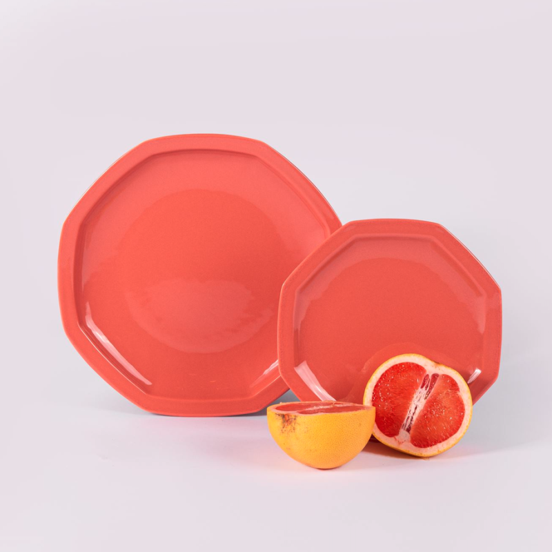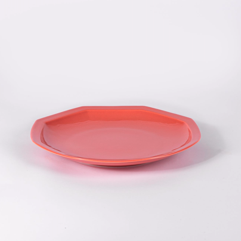 Grande assiette plate octogonale en porcelaine terracota vendue à l'unité.