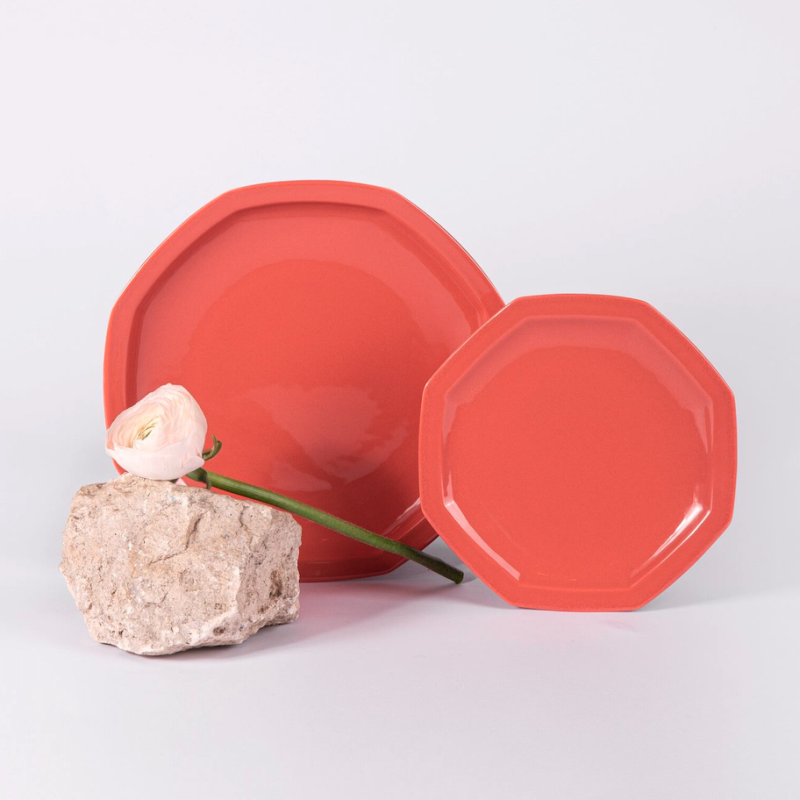 La grande assiette plate et octogonale en porcelaine terracota fabriqué par l'Ogre La Fabrique.
