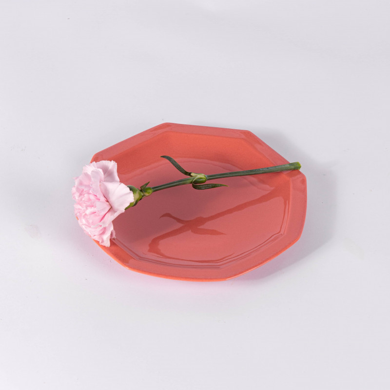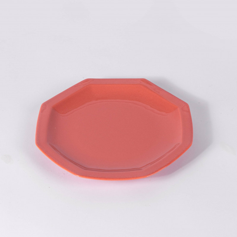 Assiette à dessert octogonale en porcelaine terracota vendue à l'unité.