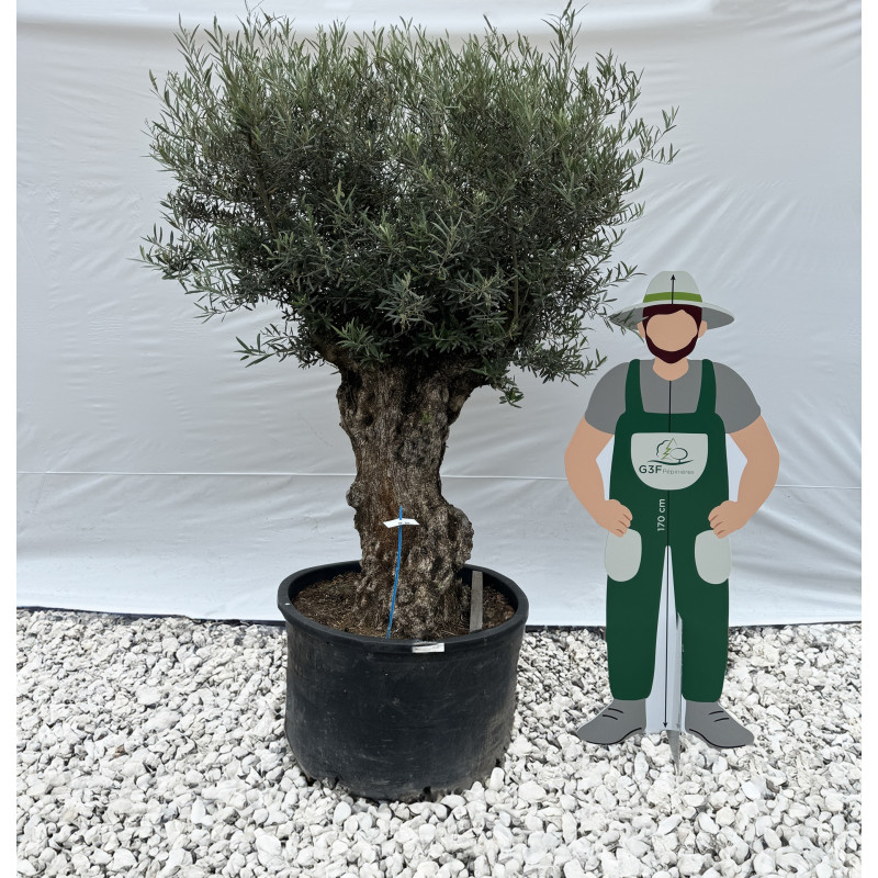 L'olivier de 125/150 cm de circonférence et de 180/200 cm de hauteur cultivé par G3F Pépinières.