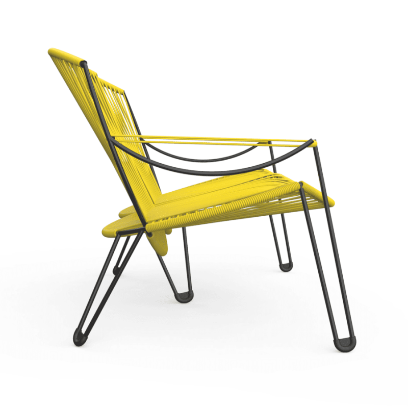 Fauteuil de jardin, collection ONIRIQUA avec sa structure noire fabriqué par BOQA.