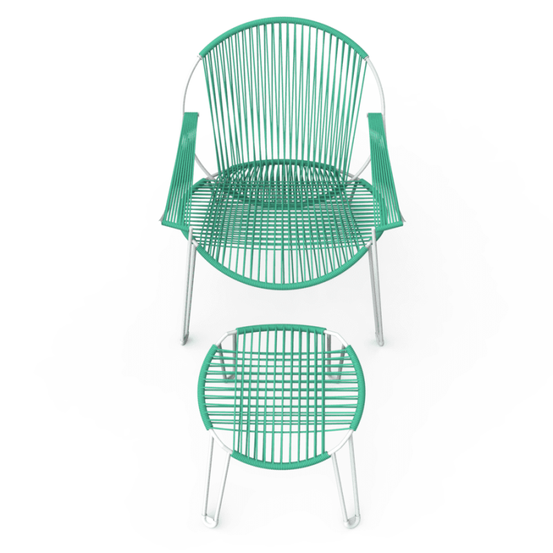 Le plastique est extrudé en France dans le Jura, les tissus sélectionnés sont tissés dans en Gironde. Les barres d’acier sont façonnées dans les ateliers de Bordeaux et avant le tressage les pièces sont peintes chez un sous traitant dans la région Bordelaise.