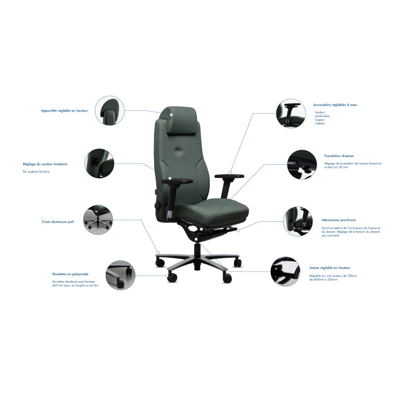 Le fauteuil de bureau ergonomique haut de gamme LEAD ERNEST 24/24 fabriqué par Navailles.