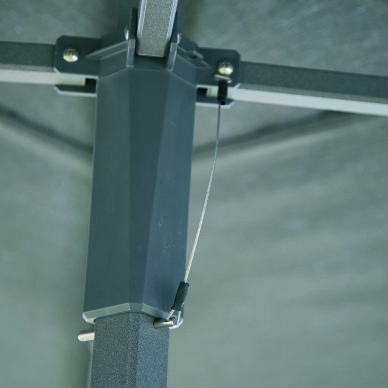 La structure en Aluminium permet un très bon rapport solidité/légèreté et une parfaite tenue dans le temps malgré les conditions extérieures. La finition de cette structure est de couleur anthracite (gris astral) qui apporte toujours une bonne dose d'élégance et de modernité à une décoration extérieure.